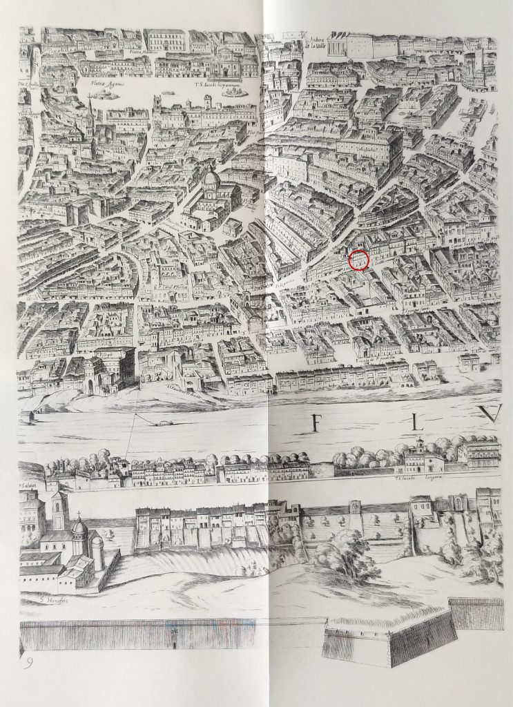 L’assunto si tramuta in strade rettilinee con palazzi patrizi, case decorose e chiese rigorosamente allineate sui due lati delle nuove strade ‘recte’ nate sull’esempio della via Alexandrina aperta ai Fori da papa Alessandro VI per il giubileo del 1500. Le strade ‘recte’ che rimodellano la Regione Arenula sono via del Pellegrino, via dei Banchi Vecchi collegata con via di Monserrato e la via ‘Magistralis’ chiamata con il nome del papa che la ridisegnò: via Giulia. Il tridente a ventaglio che collega ponte Sant’Angelo a ponte Sisto, piazza Farnese e Campo de’ Fiori, fa il paio con l’altro tridente, quello che da piazza del Popolo porta alle pendici del Quirinale, a piazza Venezia e a piazza Navona. A differenza di quest’ultimo, però, il tridente della Regione Arenula suscita maggiore interesse negli investitori del tempo, i ricchi banchieri fiorentini ‘padroni’ dei Banchi vecchi e di molte altre famiglie nobili che in buona sostanza muovono l’economia della città. La ‘recta’ Magistralis di Giulio II, si orna d’importanti chiese, a cominciare da San Giovanni dei Fiorentini, che gli fa da anticamera. Lungo la strada, tra le altre, si trovano San Filippo Neri, detta di Filippino per le sue modeste dimensioni (oggi ridotta a studio di design), la chiesa di Santa Maria dell’Orazione e Morte, poi Santa Maria del Suffragio, San Biagio della Pagnotta, quella di Sant’Eligio degli Orafi, l’al- tra di Santa Caterina da Siena e Santa Maria Annunziata del Gonfalone, oggi Oratorio del Gonfalone, quindi il soppresso monastero di Sant’Aurea sulle cui rovine, morali e materiali, sorse l’attuale Santo Spirito dei Napoletani. Il chiacchierato monastero di Sant’Aurea accoglieva in clausura molte figlie legittime e non della nobiltà romana, avviate alla carriera monastica più per ragion di status che non per naturale vocazione. La qual cosa favorì una forma di lassismo con le giovani ospiti in clausura di giorno e fuori dalle sue mura al calar della notte, magari per andare semplicemente a dormire nel vicino palazzo di famiglia, ma spesso altrove. Alla blanda clausura in uscita si aggiunsero poi poco discrete presenze maschili in entrata. Un andazzo intollerabile che portò alla chiusura del convento.